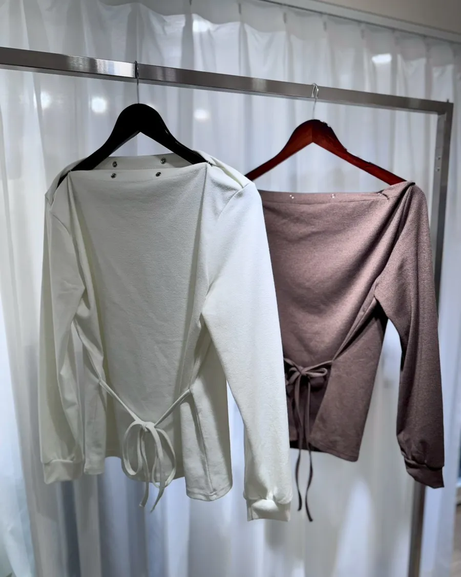 設計感扣子魅力綁帶斜肩T