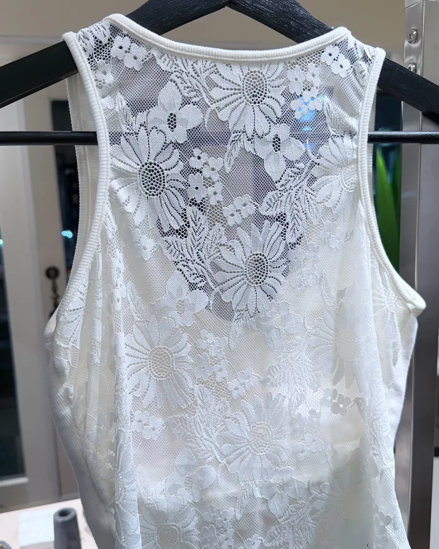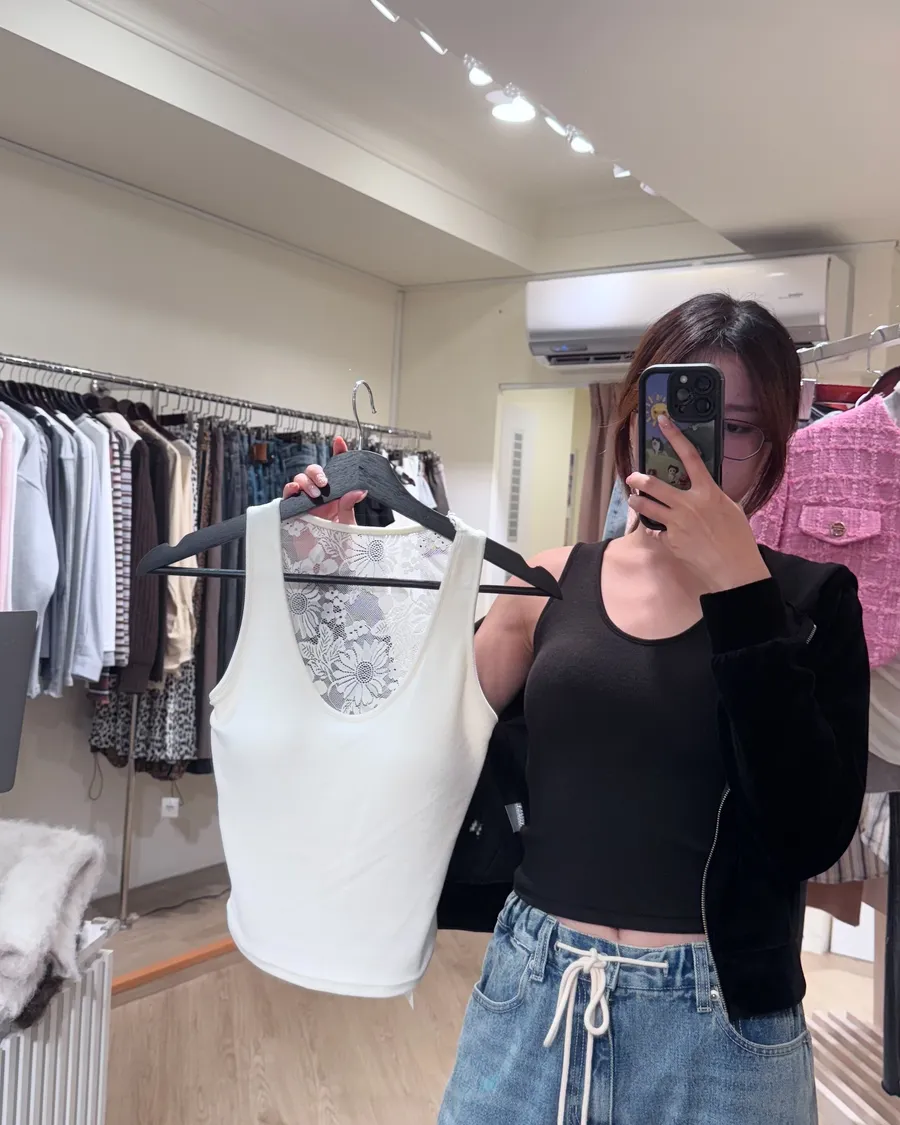 我很喜歡這件的小心機背面露膚的蕾絲布料,很適合想要小露一點的人,裡面有胸墊的設計可以不用額外再穿內衣出門!!!