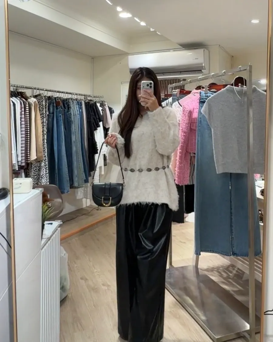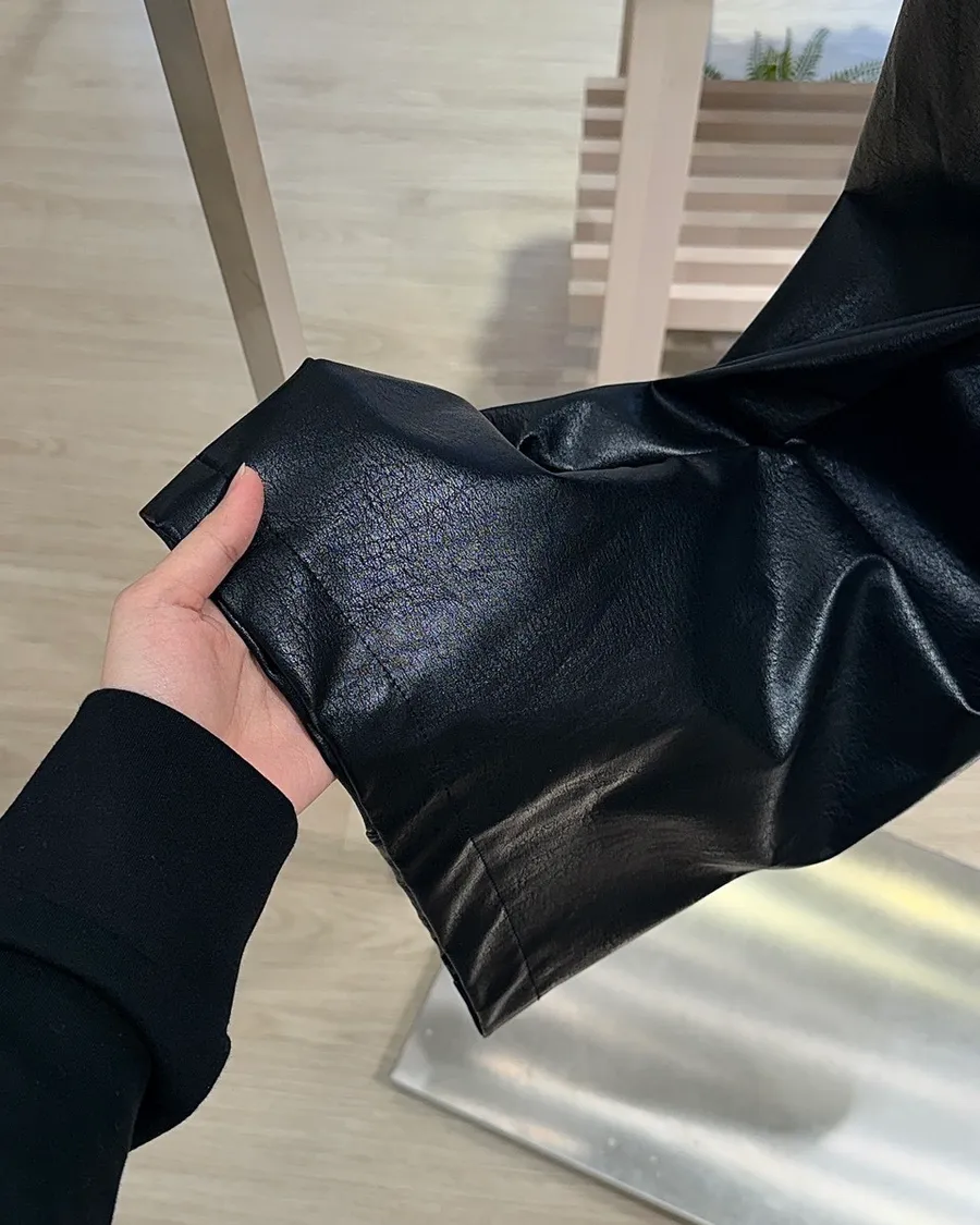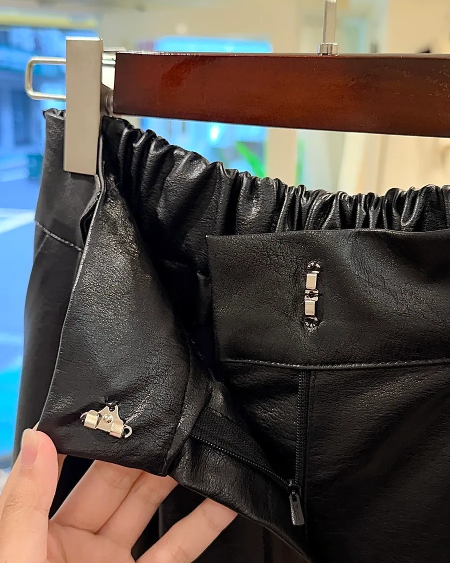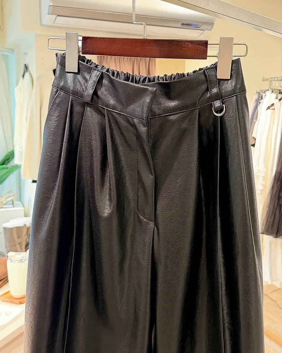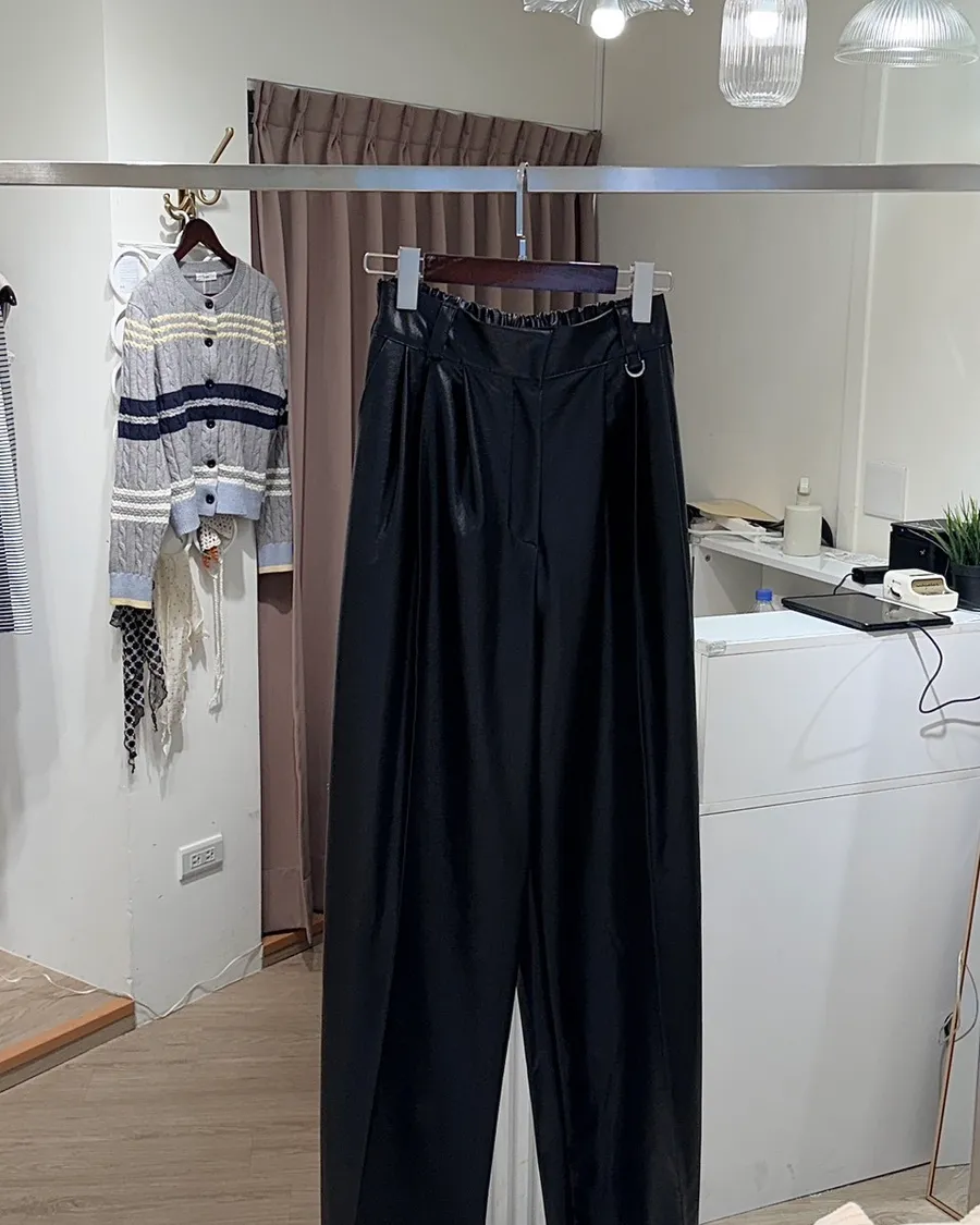 韓感高級銀扣皮革直筒長褲✨