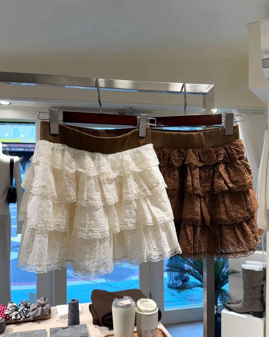 三層蛋糕感蕾絲超加分,鬆緊腰好穿又顯腿長,甜甜的韓系氛圍直接拉滿,隨便搭都很有女主感。